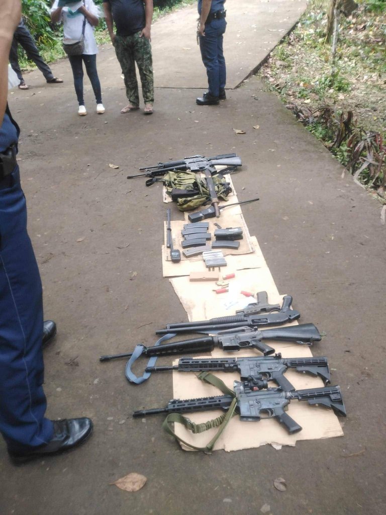 Nakumpiska sa suspek ang isang (1) unit ng M16 rifle colt RP256304, isang (1) unit ng M16 rifle with serial no.9069155, isang (1) unit ng M16 rifle defaced serial no., isang (1) unit ng armscor shotgun with serial # 178379, isang (1) unit ng Colt, M16 rifle with (airsoft), isang (1) unit ng 1 M16 rifle defaced serial number (airsoft), Dalawang (2) piraso ng Han held radio, Dalawang (2) piraso ng Military uniforms, apat (4) na piraso ng military vest, isang (1) pirasong military bandoler, dalawang (2) piraso ng rifle magazine, anim (6) na pirasong long magazine at twenty one (21) piraso ng ibat-ibang uri ng bala.
