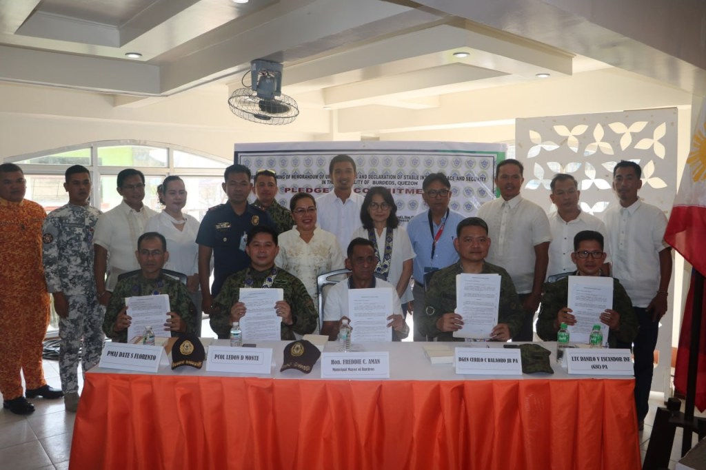 CAVINTI, LAGUNA – The municipalities of Panukulan, Polillo and Burdeos all of Quezon province were declared to have achieved Stable Internal Peace and Security (SIPS) following the Ceremonial Signing of Memoranda of Understanding on March 27 and 28, 2023.