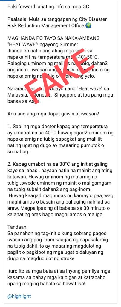 However, Vergeire stressed that these claims are unfounded and lack scientific basis. She emphasized that there is no evidence to support the notion that consuming cold water or bathing immediately after exposure to extreme heat poses any danger to health.