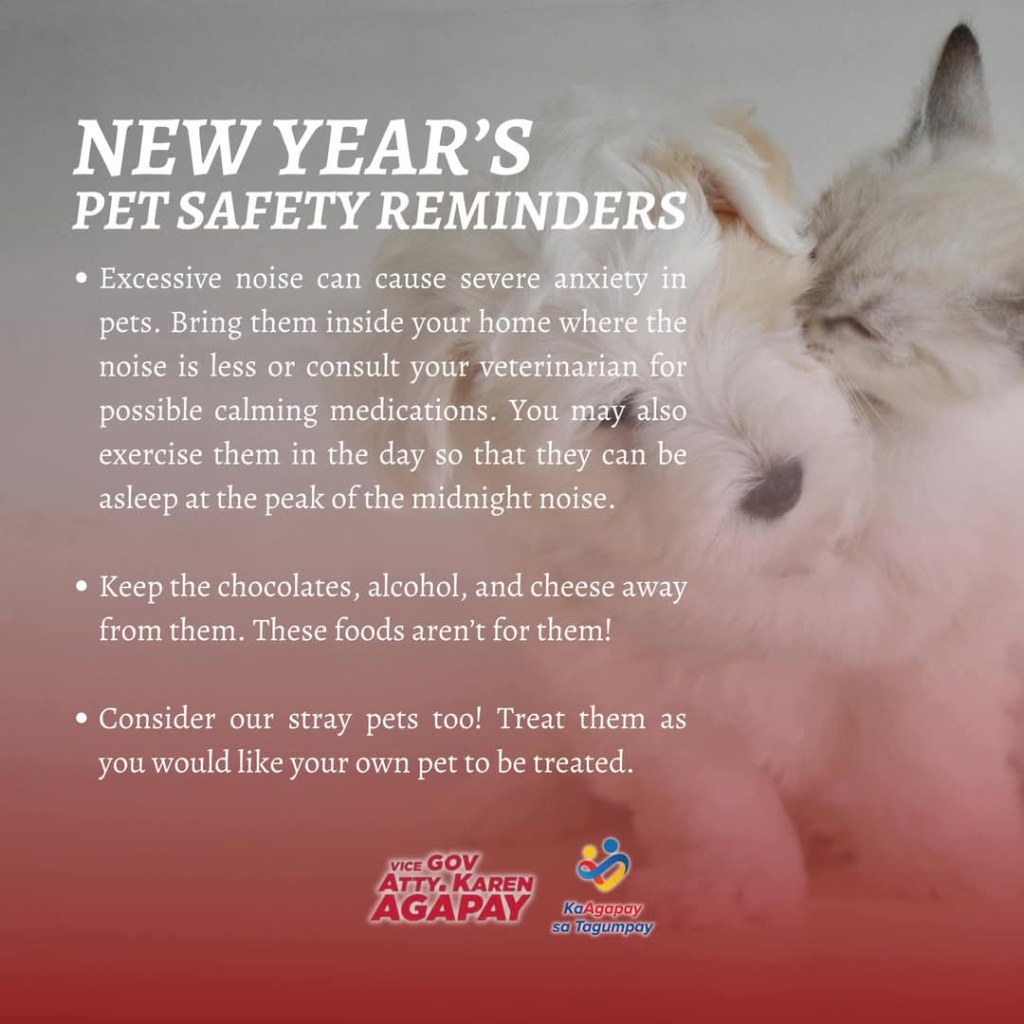 With these reminders, Vice Governor Agapay encourages everyone to make 2025’s arrival a joyous and pet-friendly celebration.