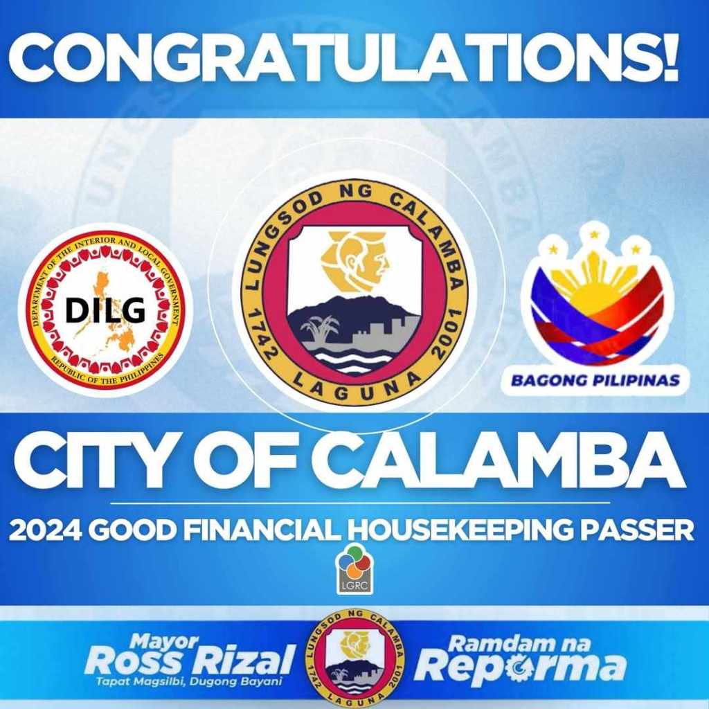 Calamba City has once again achieved a significant milestone as it was recognized as one of the Good Financial Housekeeping (GFH) Passers for Calendar Year 2024 by the Department of the Interior and Local Government (DILG).