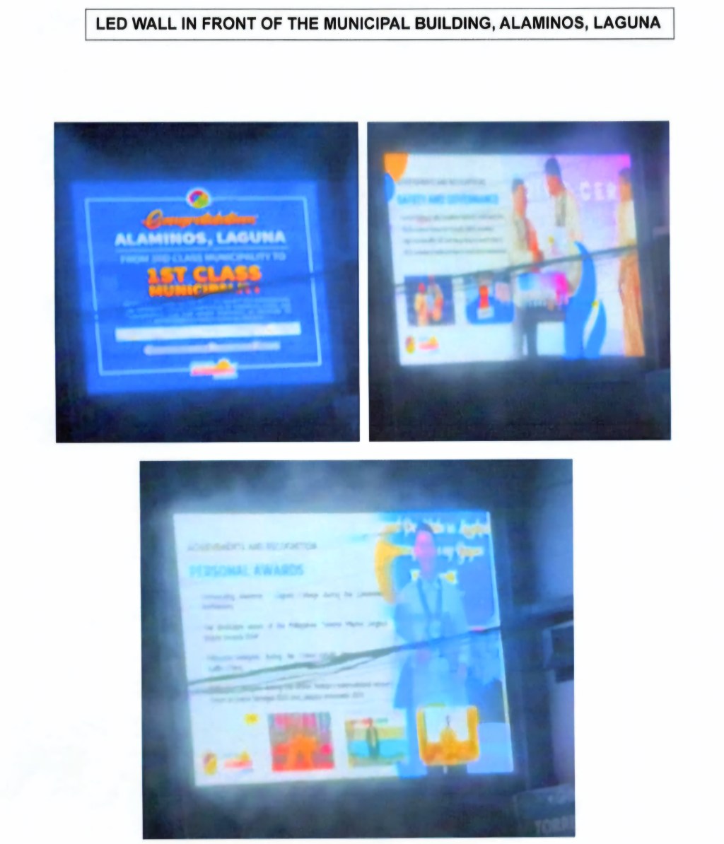 One of the key pieces of evidence cited is the LED wall situated directly in front of the Alaminos Municipal Hall, which is allegedly being used for campaign purposes—raising concerns over the use of public property for political gain.