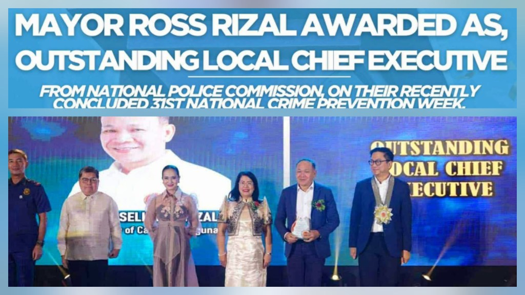 - Calamba Shines with Dual Achievements as Mayor Ross Rizal Celebrates Environmental Excellence**** by: Edjun Mariposque **** Calamba City — Calamba’s commitment to environmental stewardship and good governance reached a new… Read more: Calamba Shines with Dual Achievements as Mayor Ross Rizal Celebrates Environmental Excellence