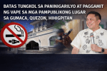 - BATAS TUNGKOL SA PANINIGARILYO AT PAGGAMIT NG VAPE SA MGA PAMPUBLIKONG LUGAR SA GUMACA, QUEZON, HIHIGPITANby: BONG RIVERA **** QUEZON — Hihigpitan ng pamahalaang bayan ng Gumaca, Quezon ang pagpapatupad ng mga batas laban sa… Read more: BATAS TUNGKOL SA PANINIGARILYO AT PAGGAMIT NG VAPE SA MGA PAMPUBLIKONG LUGAR SA GUMACA, QUEZON, HIHIGPITAN